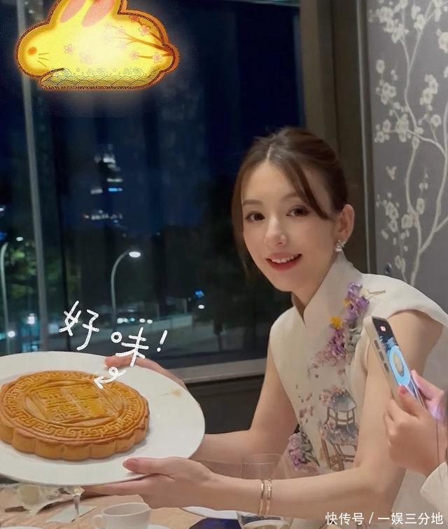 方媛穿着白色的中式旗袍,开心的端着大大的月饼拍照,从照片中能看得出她孕肚明显,看来是真的还没生三胎呢。
